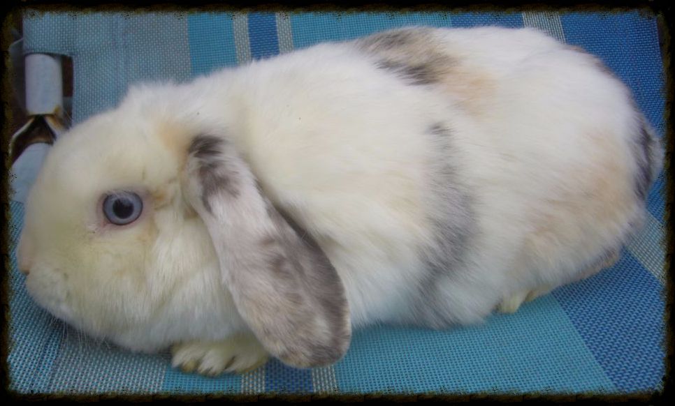 Fajta/szín: szatén törpe kosorrú, fehér nyest jegyekkel